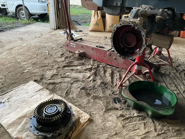 先ずはトラクター のオイル漏れ修理。フロントファイナルケースの縦軸からオイルが漏れているので、オイルシールの交換です。ここまでバラすのが大変ですが、オイルシール交換自体は簡単!新しいオイルシールをはめて、元通りに組み付けます。オイル漏れは片方だけでしたが、もう片方も新品に交換します。(後でもう片方やるのは大変なので…)
